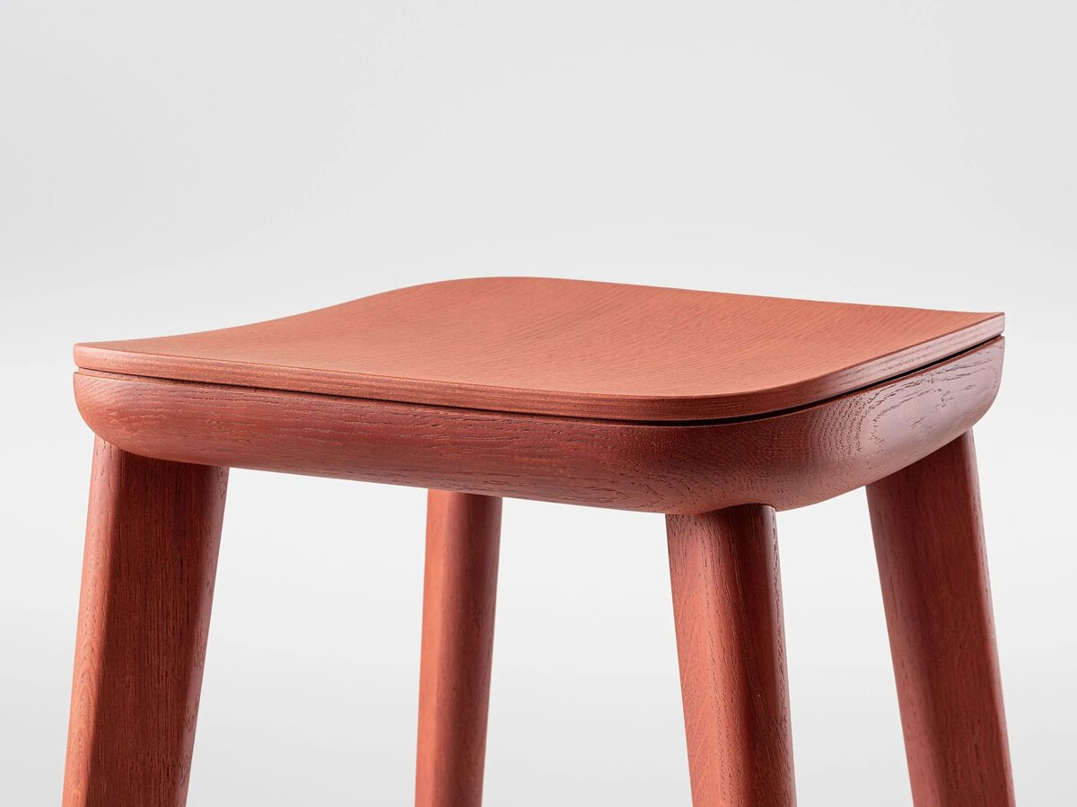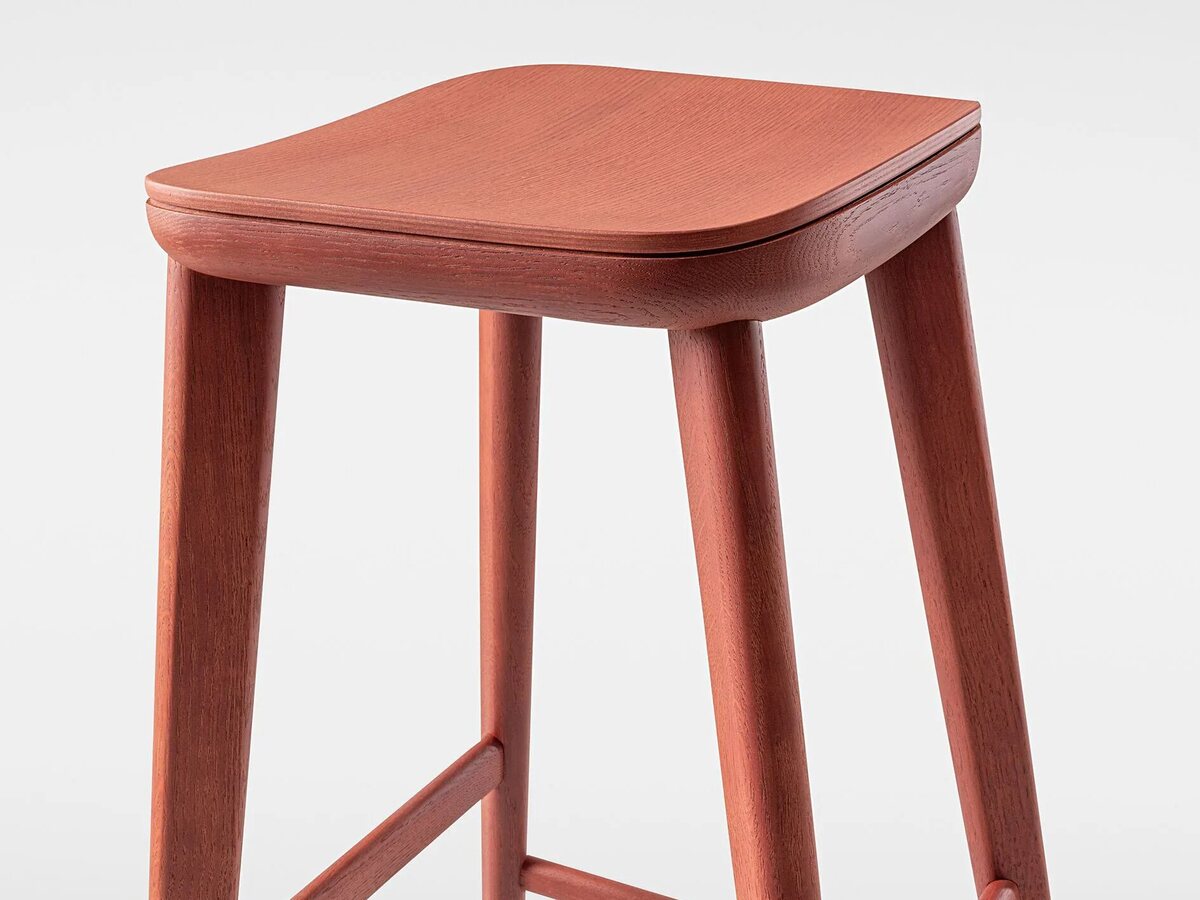 • A minimalist wooden bar stool with footrest, available in two heights to suit various settings.
