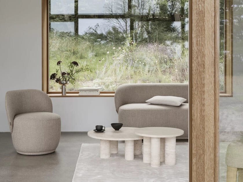 • A compact 2-seater sofa with a minimalist design and bouclé upholstery.