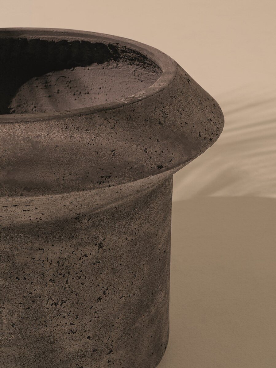 The Cement Garden Vase by Ethimo features a textured surface and sculptural form, inspired by organic shapes. Suitable for plants or standalone decoration.