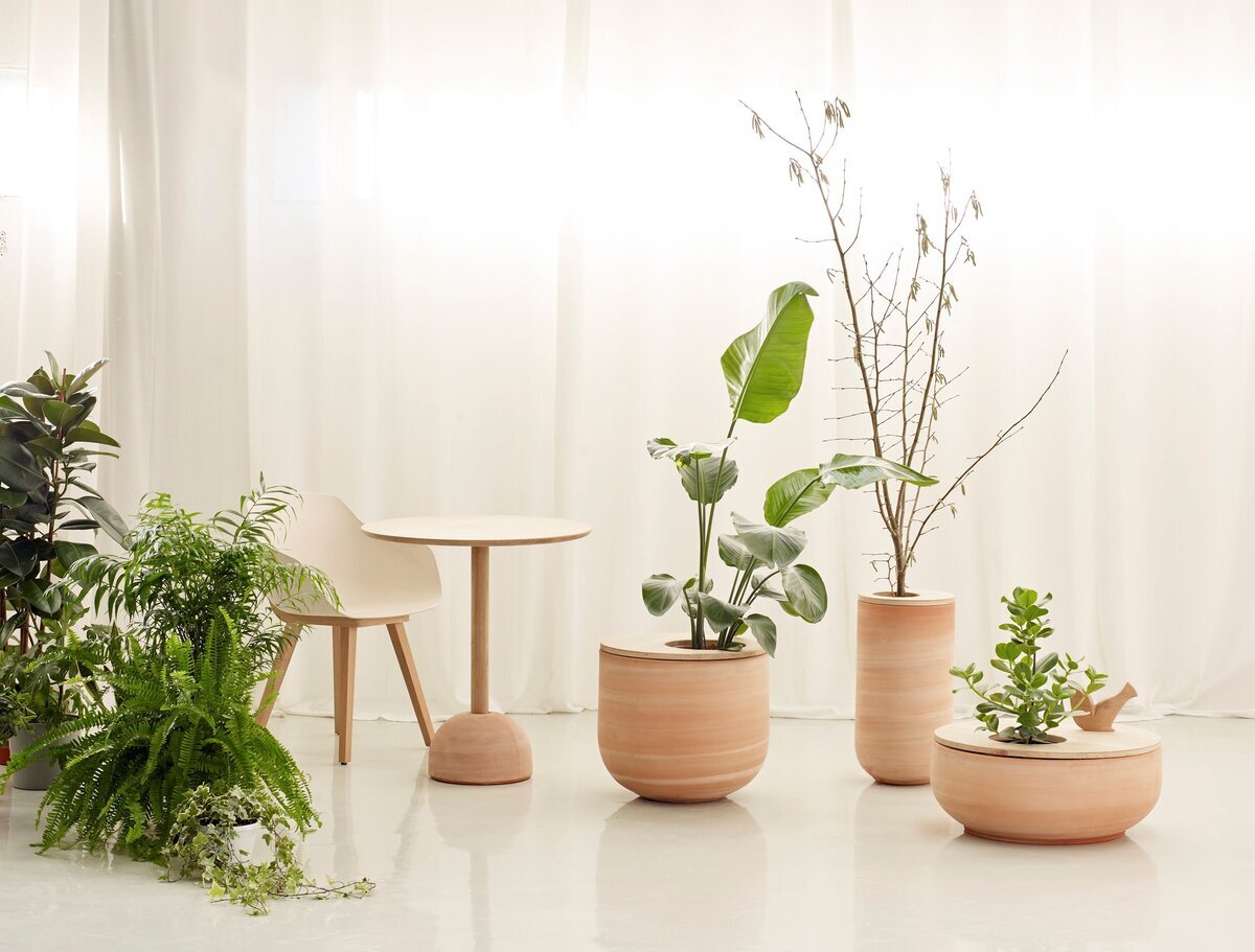 A handcrafted vase made from natural terracotta, showcasing minimalist design.