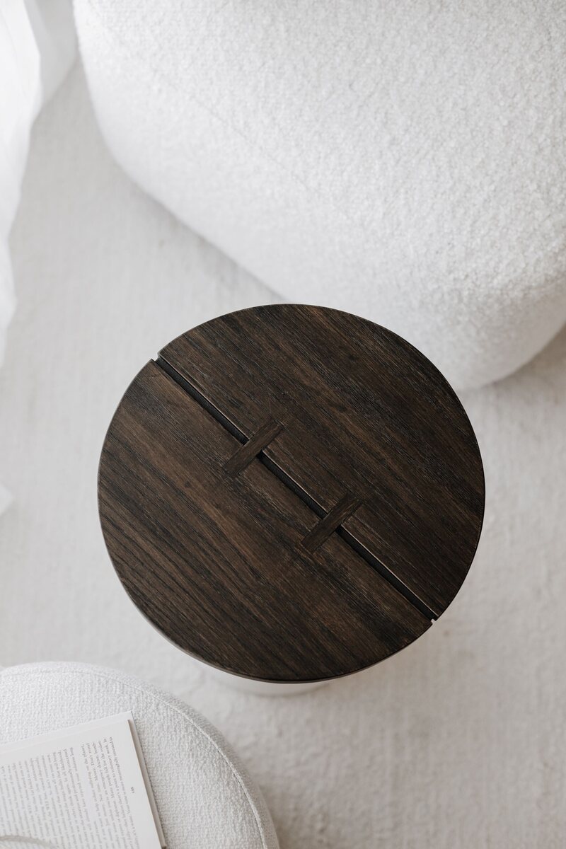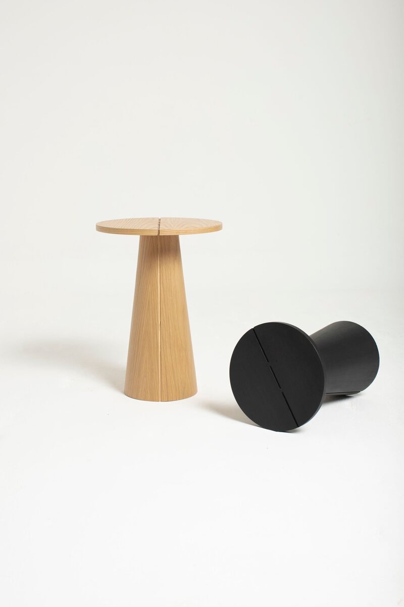 The Minimalist Oak Table by Yet Studio works as a side table or nightstand. Crafted from solid oak with smooth edges and a neutral look.