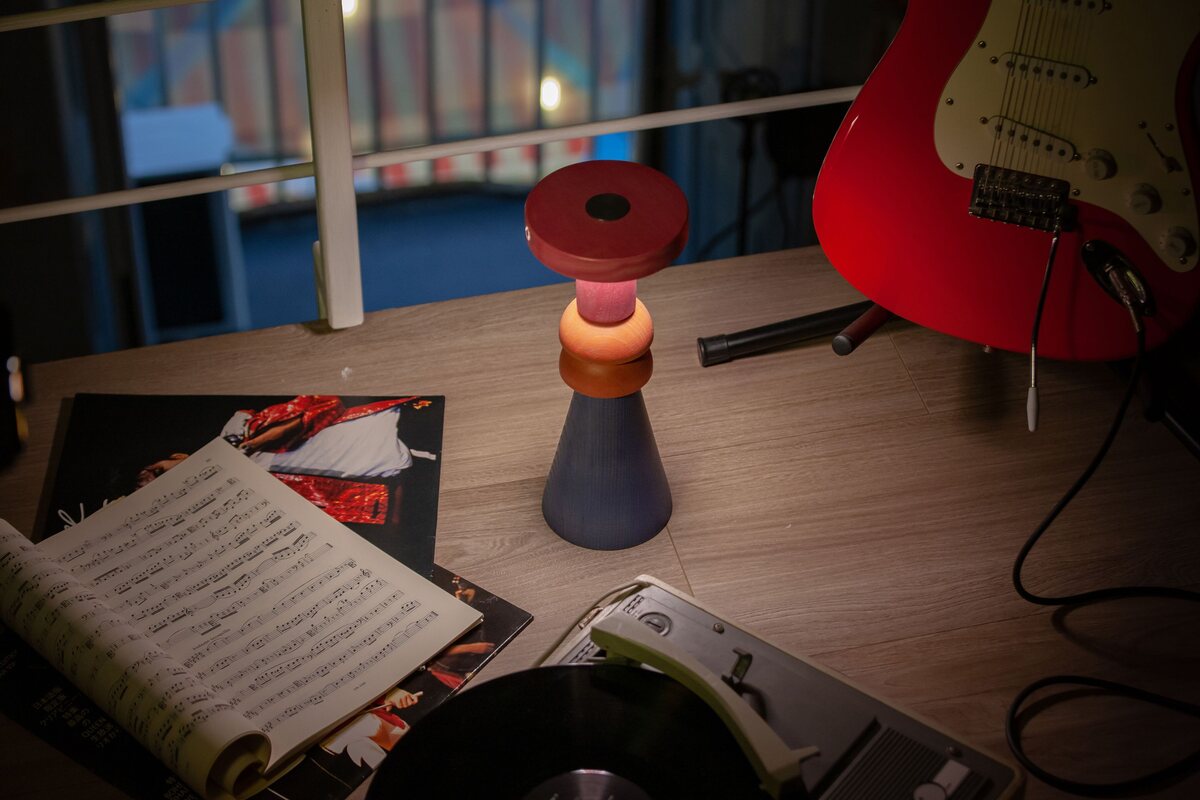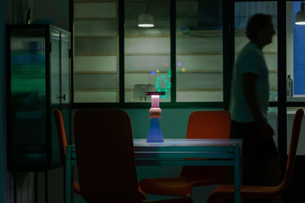 The Scacco Matto Lamp by Lumere is a portable, modular table lamp crafted from aluminum and wood. Its magnetic components allow for five different configurations, offering versatility in lighting and design.